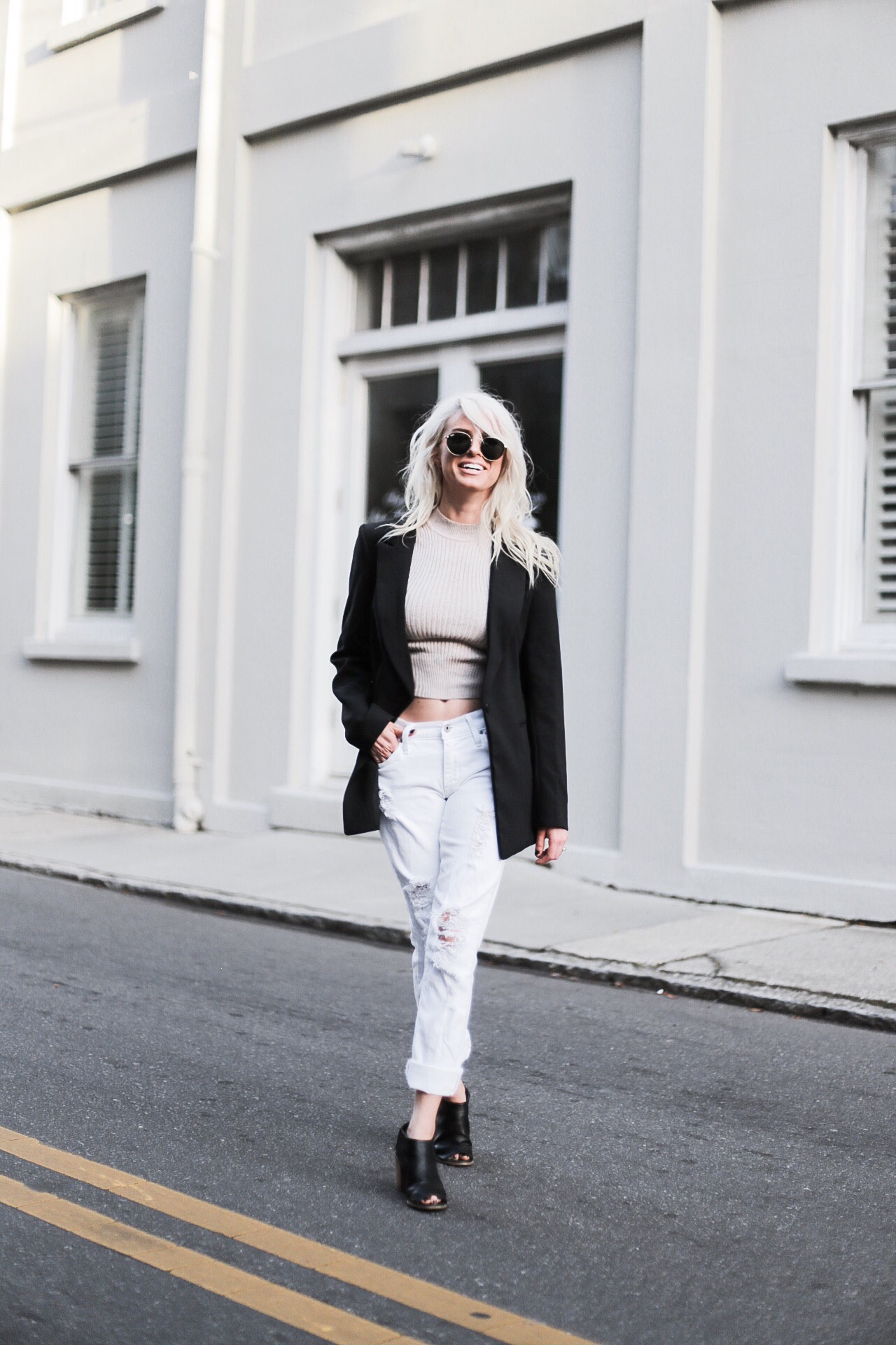 It really helps when you pair them with high waisted boyfriend jeans though! I’m more top heavy, so this look is hard for me to feel completely comfortable in unless I’m wearing a blazer. I just can’t help but wear them though!